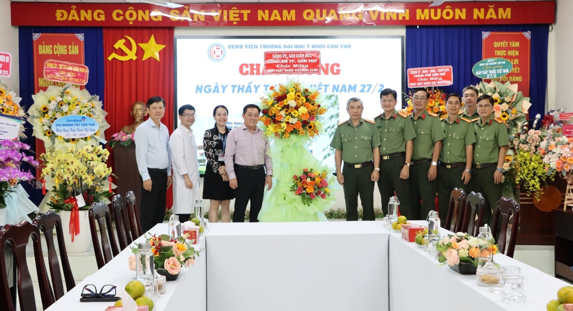Ban Giám đốc, đại diện các phòng ban thuộc Bệnh viện chụp ảnh lưu niệm cùng đoàn Công an thành phố Cần Thơ