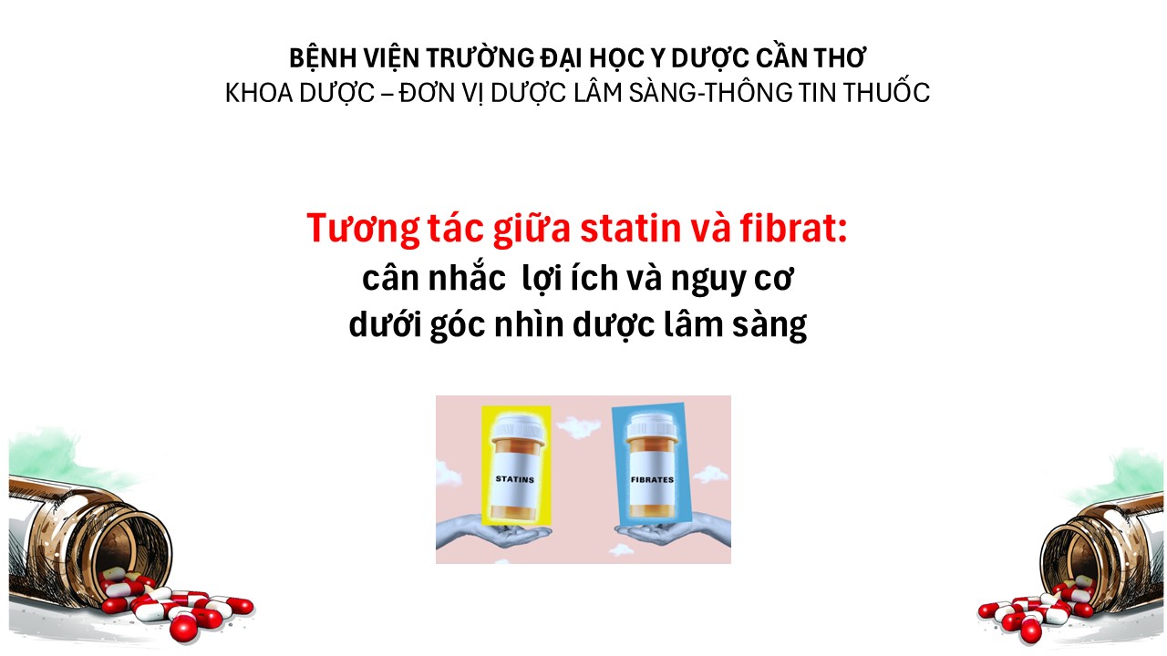 Fibrat (đặc biệt là gemfibrozil) là chất ức chế CYP2C9, có nguy cơ tương tác dược động học mạnh với statin, làm tăng nồng độ statin trong máu, tăng nguy cơ tiêu cơ vân. Fenofibrat, so với gemfibrozil, ít ảnh hưởng đến chuyển hóa statin nhưng vẫn có độc tính cơ độc lập trên cơ vân, đặc biệt ở người cao tuổi hoặc có bệnh thận mạn [3].