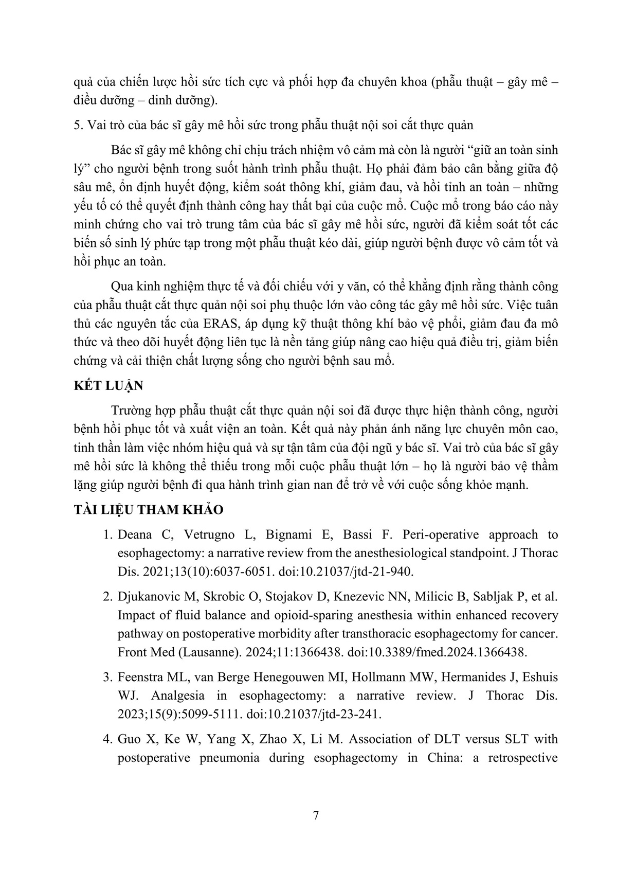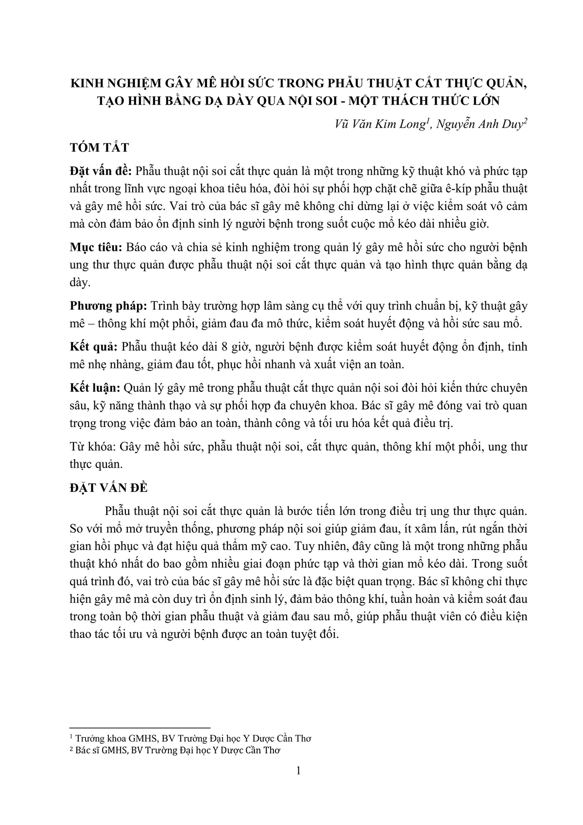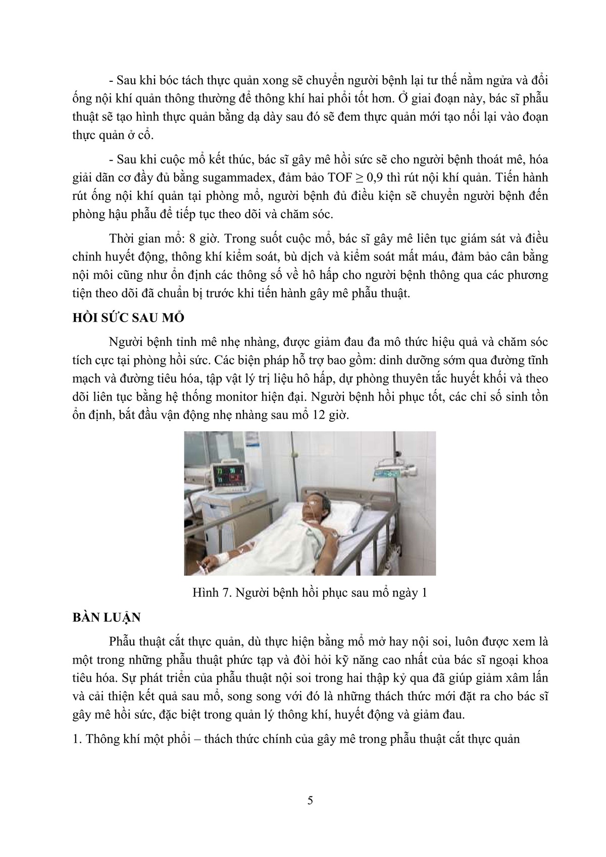 KINH NGHIỆM GÂY MÊ HỒI SỨC TRONG PHẪU THUẬT CẮT THỰC QUẢN, TẠO HÌNH BẰNG DẠ DÀY QUA NỘI SOI - MỘT THÁCH THỨC LỚN