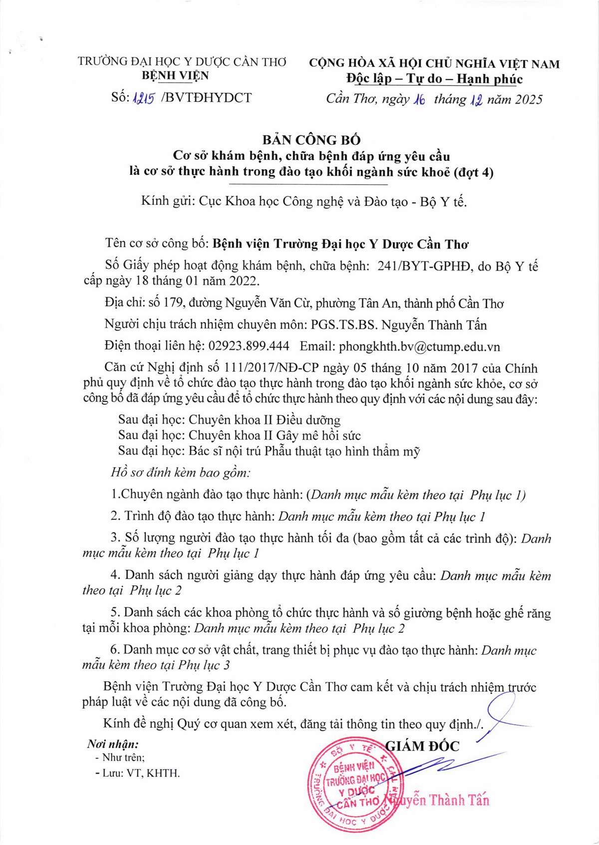 Bản công bô cơ sở khám chữa bệnh là cơ sở thực hành (đợt 4)