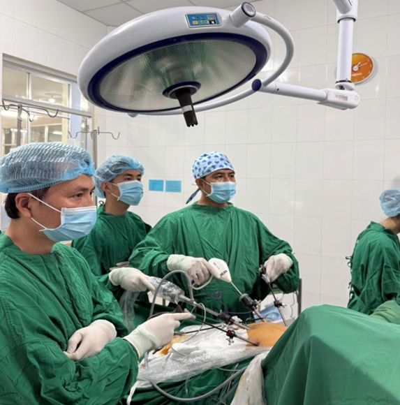 Ca phẫu thuật kéo dài 90 phút, đã thành công tốt đẹp. Ekip phẫu thuật bao gồm: Ths.BSCKII. Nguyễn Trung Hiếu, Ths.BS. Nguyễn Đức Duy, BSNT. Nguyễn Văn Dờ, BSNT. Nguyễn Hải Anh, BSNT. Lê Bảo Ngân. Sau phẫu thuật, người bệnh được đặt sonde tiểu, ống dẫn lưu ổ bụng và nhét gạc âm đạo.