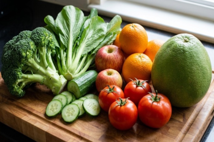1. Rau xanh trái cây và ngũ cốc nguyên hạt.