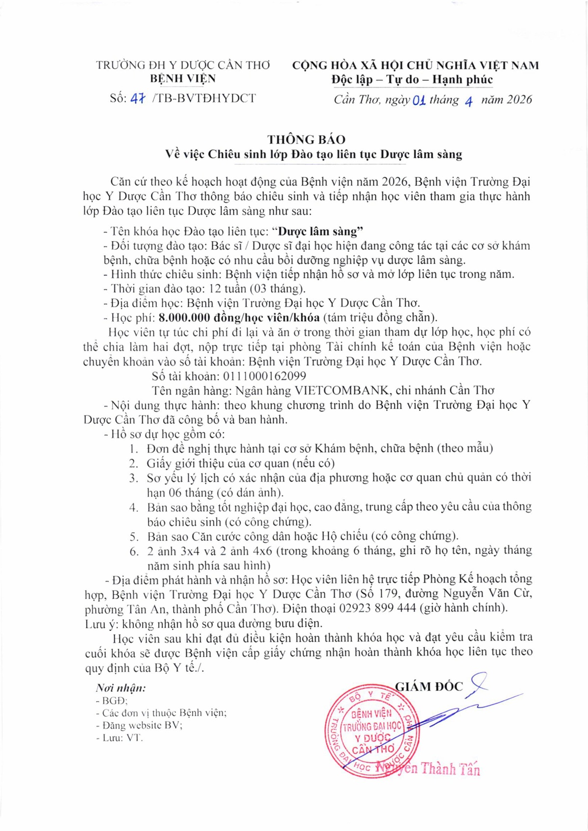 >>>QUYẾT ĐỊNH SỐ 236 BAN HÀNH CHƯƠNG TRÌNH ĐÀO TẠO LIÊN TỤC DƯỢC LÂM SÀNG TẠI BỆNH VIỆN TRƯỜNG ĐẠI HỌC Y DƯỢC CẦN THƠ <<<