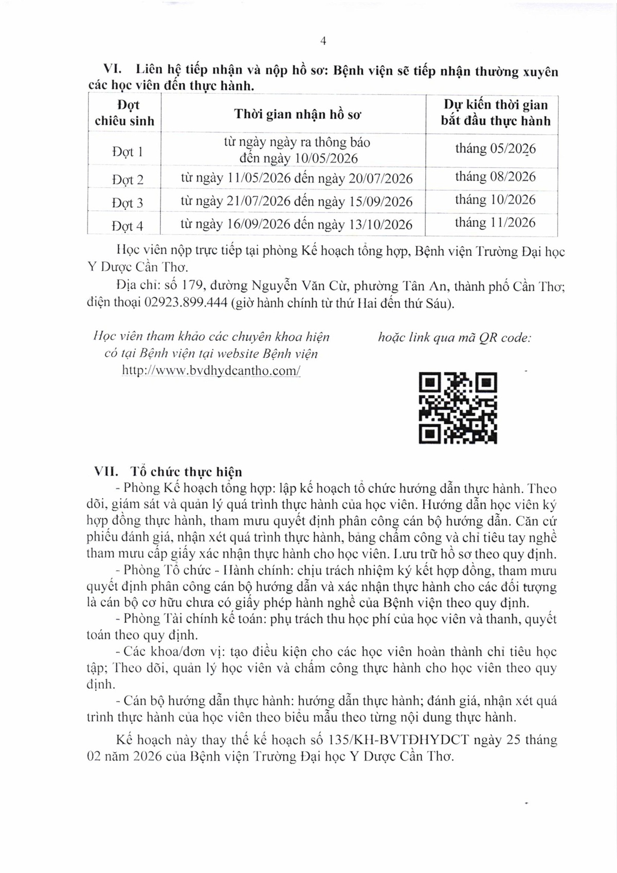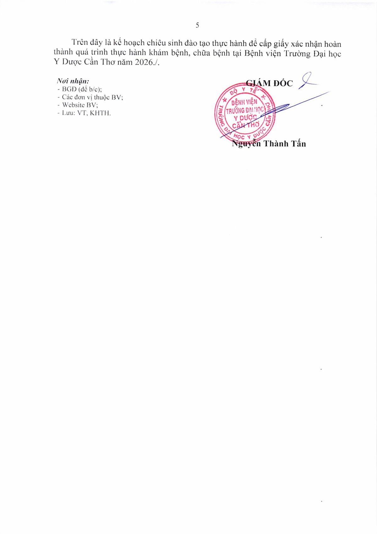 Kế hoạch số 135 chiêu sinh đào tạo thực hành để cấp giấy xác nhận hoàn thành quá trình thực hành khám bệnh, chữa bệnh tại Bệnh viện Trường Đại học Y Dược Cần Thơ năm 2026