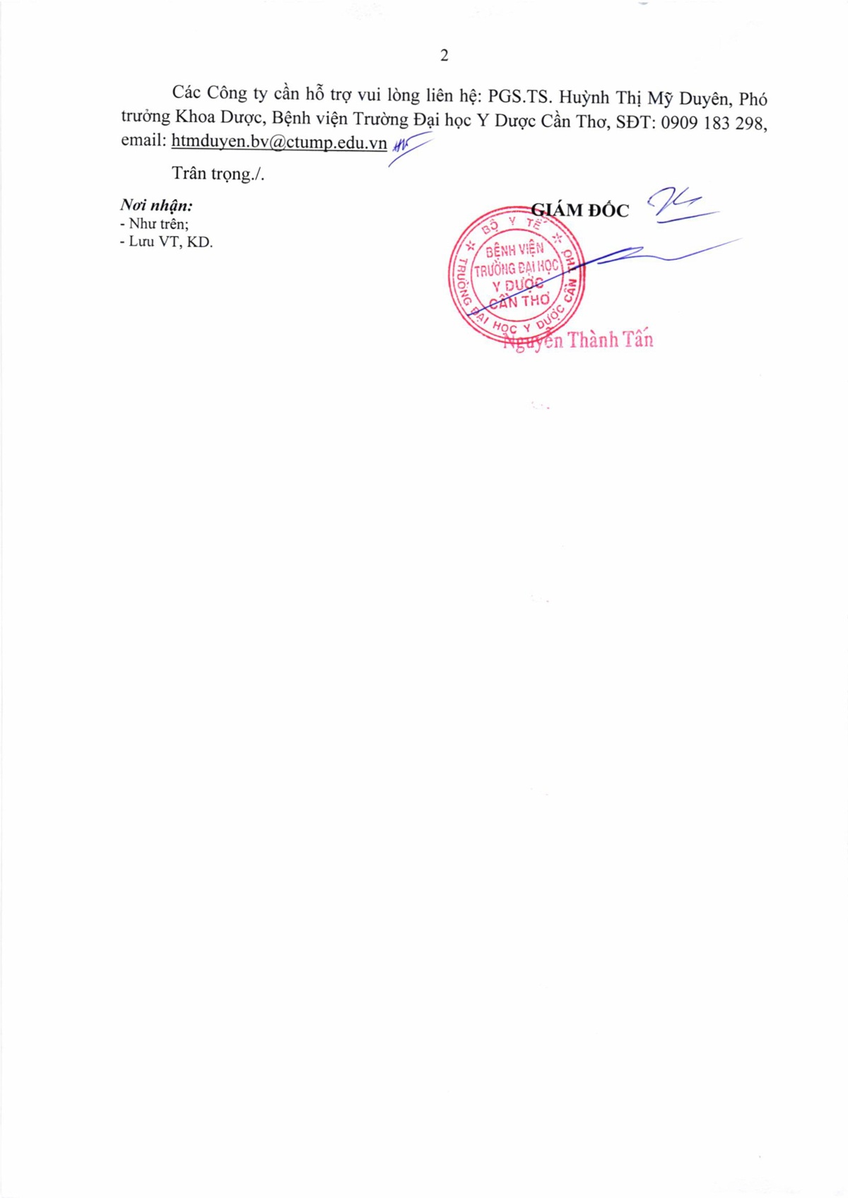 Về việc yêu cầu báo giá thuốc sử dụng tại Bệnh viện Trường Đại học Y Dược Cần Thơ